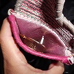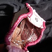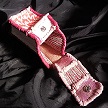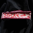 曲面デザインのメガネ(サングラス)用に作ったケースです。 参考メガネサイズは、縦14.5センチ×横4センチ×幅5センチ。 ケース寸法:幅7センチ、長さ17センチ(長)、長さ7センチ(短)。 ケース寸法:高さ、6センチと4センチ。 表面の面積が大きい部分は、ホワイトレザーに編み込みデザインを型押したものを使用。 表面の左右は、ホワイトをベースに、レッドのギザ模様をプリントしたレザーを使用。 表面の底の部分と蓋の一部に、細かい草木の柄のある型押しブラウンレザーを使用。 表面の蓋の中間とスナップ固定部分は、ピンクレザーを使用しています。 ケース内側の面積の広い部分と蓋の一部に、ストライプラインをプリントした布生地のようなレザーを使用。 ケース内側の底の部分と蓋の一部に、レッドメタリックをボカシたデザインのレザーを使用。 ケース内側の左右とスナップ固定部分は、ベージュレザーに花柄を型押したものを使用しています。 ケース周囲のかがりは、ピンクとワインレッドのレザーを使用して、かがり仕上げをしています。 *メガネは、参考のもので、付属しません。 |