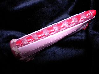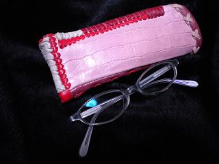 | 説明 | ケース寸法:幅6センチ、長さ17センチ(長)、長さ15センチ(短) スリムなメガネ(長さ約13センチ、4.5センチ位)に適したケースです。 表面は、クロコ柄型押しのピンクレザーを使用し、中間に、淡い発色感のあるピンクのカラーが入ったレッドレザーをミシンで、縫製をしてつないでいます。 縫製してある箇所のレザーには、レッドのレザーを使用し、クロスにかがって、装飾をしています。 ケースの内側は、パール発色のあるスカイブルーのレザーを使用しています。 ケースの口の部分は、縫製した所のレザーと同じ、ピンクの入ったレッドのレザーを被せ、ピンクのレザーで、クロスに、かがって装飾と固定をしました。 ケース周囲は、レッドとホワイトクリームのレザーで、かがり仕上げをしています。 *メガネは、参考のもので、付属しません。 |